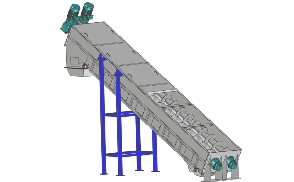 是利用螺旋軸的旋轉(zhuǎn)和傾斜角度,將洗干凈的料片,從帶有脫水篩板的螺旋底部推到出料口,脫水后的料片進(jìn)入下一道工序,水和雜物通過(guò)篩板過(guò)濾下來(lái)匯集到脫水螺旋下端的集水槽里,排至下一工序進(jìn)行處理。